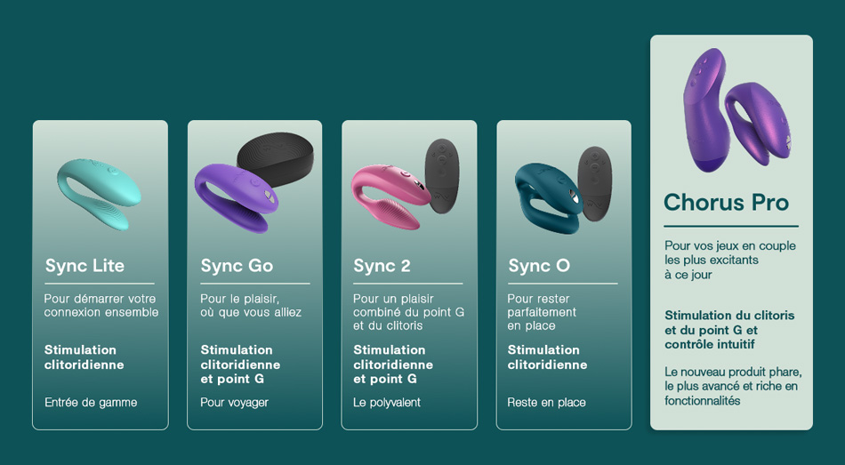 Chorus Pro est le vibromasseur pour couples le plus avancé de We-Vibe, avec trois moteurs – deux pour la stimulation clitoridienne et un pour le point G. La technologie Fusion Wave offre des sensations plus profondes et plus intenses. La télécommande Haptic Squeeze réactive permet un contrôle intuitif et connecté.