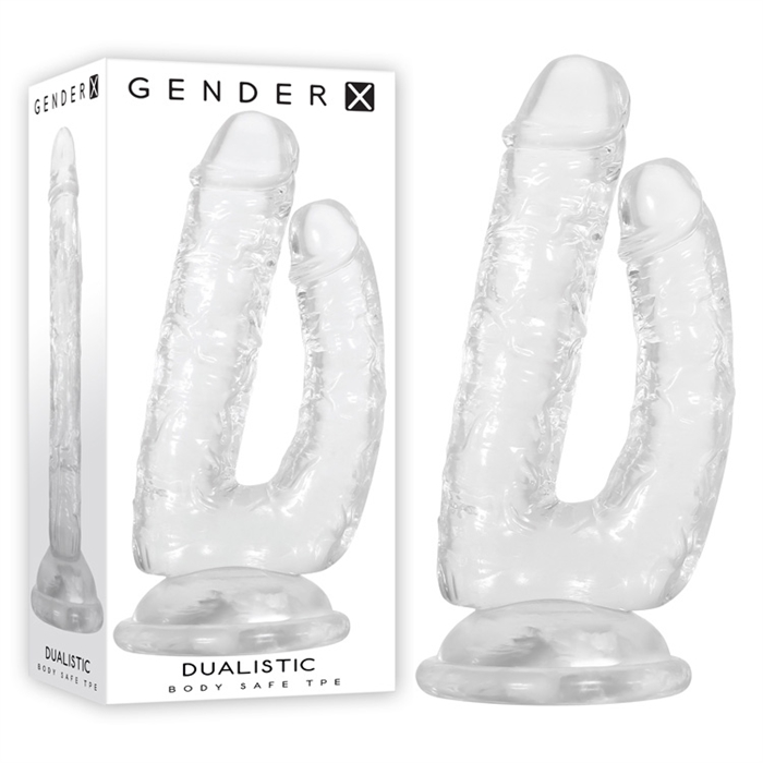 Ce gode transparent à double tige présente deux tailles uniques qui se plient et se courbent pour créer de multiples possibilités. La tige droite et plus large est parfaite pour une satisfaction profonde, tandis que l'option incurvée plus fine convient aux endroits plus difficiles à atteindre, ou à tout ce que votre imagination a en tête ! Utilisez-en un à la fois ou les deux, avec ou sans partenaire - tout ce qui vous convient pour votre plaisir ultime ! La base à ventouse puissante adhère à toute surface propre et sèche pour un jeu érotique en mains libres, et le TPE transparent sans danger pour le corps offre une visibilité exceptionnelle.