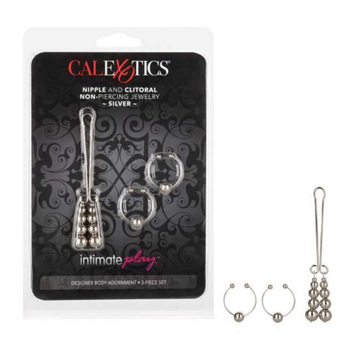 Ornez vos zones érotiques sucrées avec les bijoux de corps exotiques pour les mamelons et le clitoris sans piercing. L'ensemble d'ornement corporel design et super élégant est adapté à un usage quotidien et parfait pour les rencontres de séduction sensuelle. Les bijoux féminins non perçants entièrement réglables sont idéaux pour les amateurs de bijoux qui ne veulent pas s'engager dans les piercings corporels. Attachez les anneaux et le clip de clitoris et profitez d'un plaisir de stimulation personnel discret sous vos vêtements. L'ensemble séduisant comprend un clip clitoridien avec un ornement perlé décoratif et des anneaux de mamelons perlés élégants et discrets. L'ensemble assorti est fabriqué en acier sans ternissement, sans nickel, avec des billes ABS, et est entièrement réglable. Lorsqu'ils sont attachés aux mamelons, les anneaux créoles offrent des picotements agréables et agréables. Le clip clitoridien crée également une stimulation excitante lorsqu'il est porté. Les bijoux de corps sont conçus pour augmenter le plaisir de l'intimité pour les deux amoureux pendant le jeu. Célébrez la beauté de votre corps en l'embellissant. Le clip sensuel sur les bijoux est confortable à porter et facile à retirer. Augmentez votre satisfaction personnelle en appréciant des sensations exquises pendant que votre corps bouge naturellement. Surprenez et ravissez votre amoureux en décorant vos zones de plaisir avec des bijoux de créateurs. Gardez l'ensemble assorti en bon état en nettoyant les bijoux avant et après utilisation.