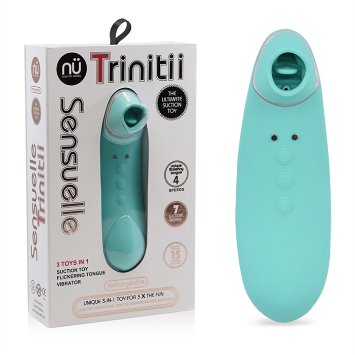 Fidèle à son nom, Trinitii combine trois sensations distinctes pour offrir une stimulation clitoridienne incroyablement unique et puissante. Un coup d'œil à Trinitii vous permet de savoir que ce n'est pas votre jouet typique. Commencez par placer la pointe douce et ouverte de Trinitti sur le clitoris pour ressentir une légère succion. Cette stimulation indirecte est parfaite pour ceux qui ne veulent pas toujours de contact direct. Ensuite, la langue vacillante de Trinitii imite la sensation du sexe oral. Enfin, Trinittii vibre également pour ajouter un dernier frisson que vous ressentirez partout où il touche votre peau.