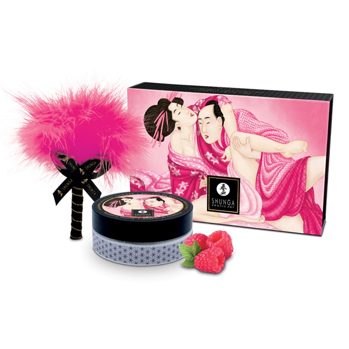 Transformez votre partenaire en un délicieux dessert. Il suffit de saupoudrer la poudre sur les zones érogènes, de taquiner avec le plumeau et de se régaler.